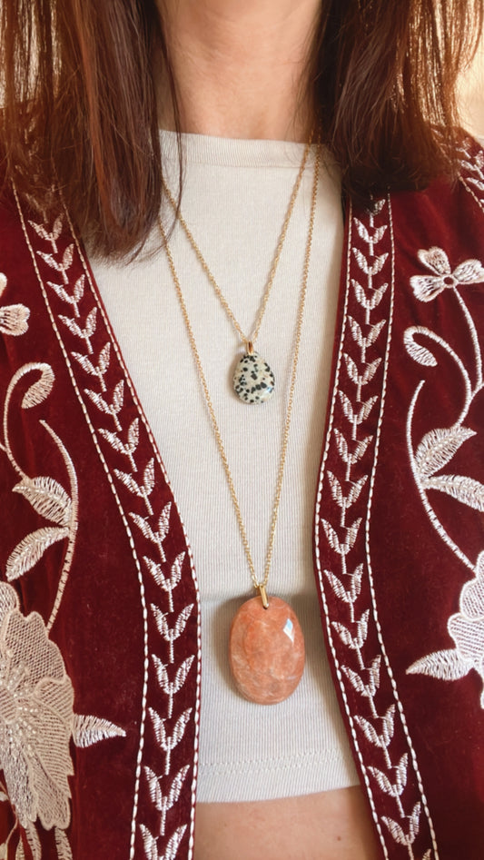 COLLIERS PENDENTIF EN JASPE DALMATIEN